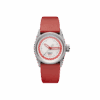 Time is indicated by matte red phantom H+M hands, brushed stainless steel lollipop seconds hand, and matte black tip. A double-domed anti-reflective sapphire crystal ensures readability in all light conditions.